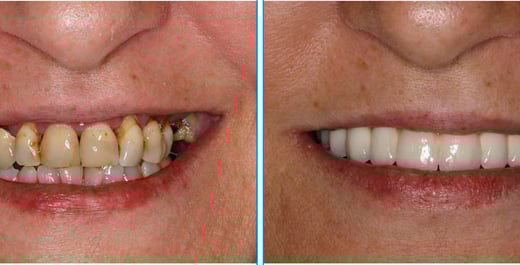Tras estudiar su caso, realizamos una rehabilitación completa All-on-6 con implantes Straumann SLActive y obteniendo este resultado 24 horas después de la colocación de los implantes.